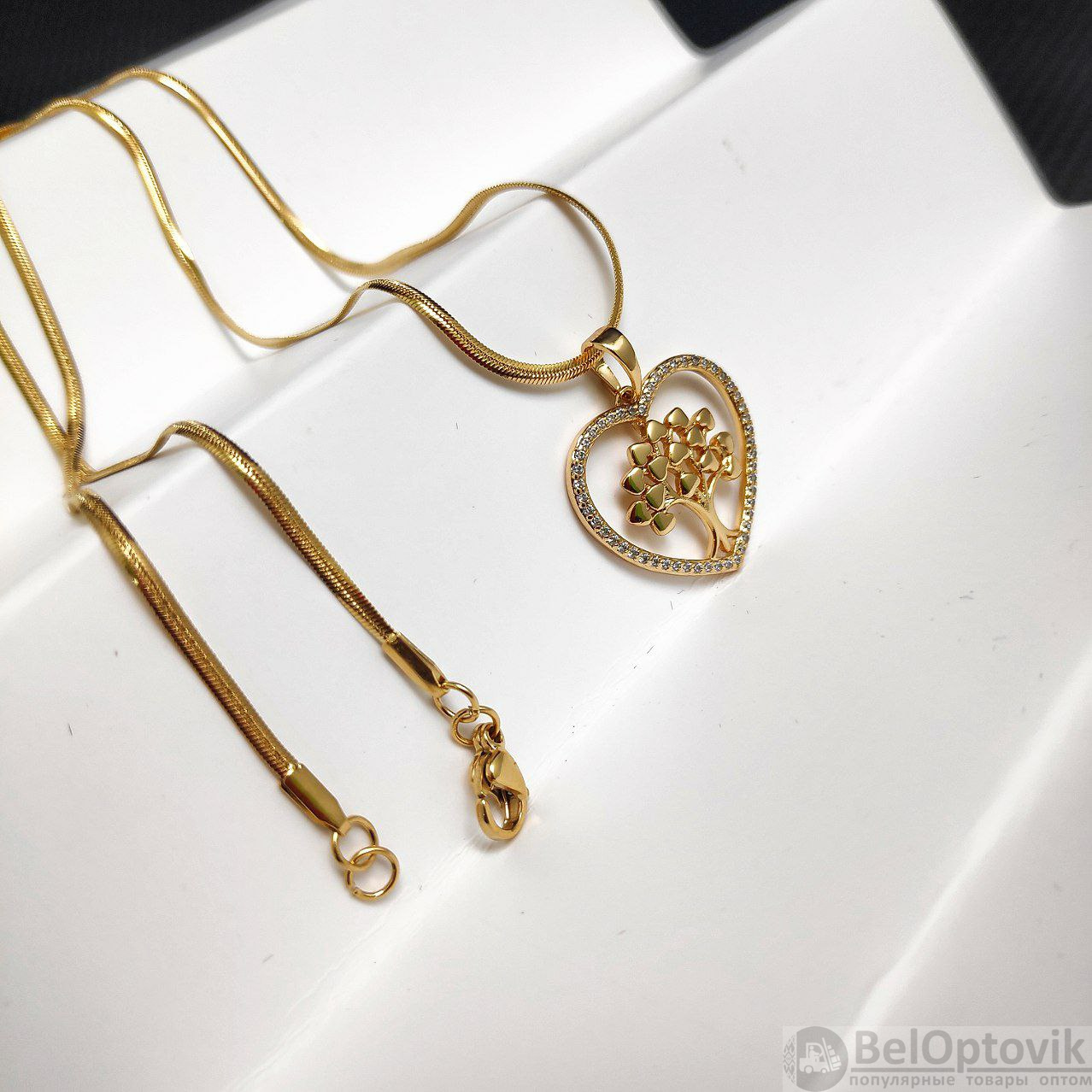 Купить Подвеску «Дерево жизни в сердце» / Кулон 2,0 см. на цепочке Snake «Сингапур» под золото / Украшение женское на шею в обрамлении камней на нашем сайте можно ОПТОМ от 20 шт. или не менее 5, если Вы покупаете у нас и другие товары (сборный заказ).